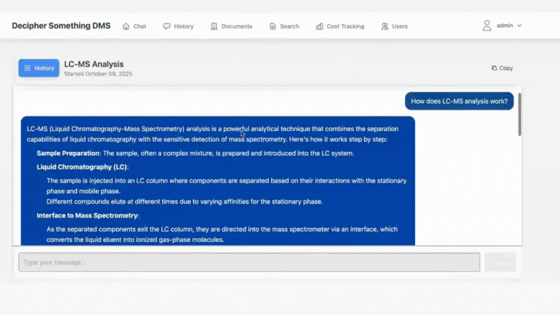 Ask questions and get responses with references. Additional agents can search, extract, analyze, compare, calculate, and make charts from documents.